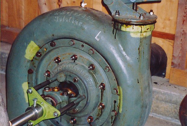 1924 wurde das Wasserrad durch eine Wasserturbine (System Francis der Fa. Meyer Solothurn) mit Druckleitung ersetzt, welche auch die neue Wagenfräse antrieb. Das baufällige Wasserrad wurde im Winter 1928/29 durch Frost noch ganz zerstört, wenig später abgebaut und der Radschacht aufgefüllt. Die Turbine blieb bis zur Restauration der Säge im Betrieb. Zusätzlich wurde in den 1980er Jahren ein Elektromotor zur Unterstützung eingebaut, bis 1989 der Sägebetrieb ganz eingestellt wurde.